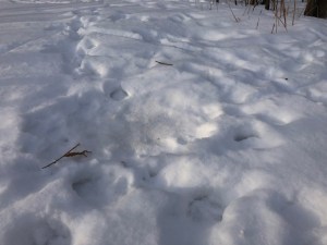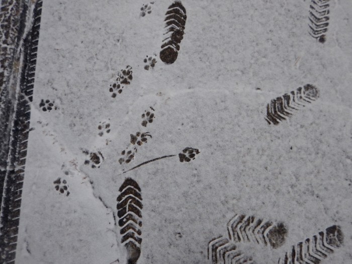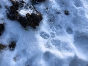 The ground is thawing during the day, and what little snow is left is getting pretty soft. It refreezes overnight and leaves some perfect prints in the morning.