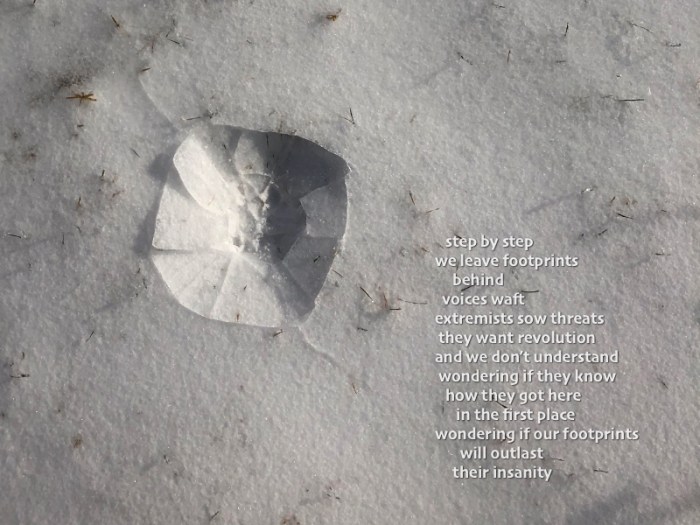 Possibly because the earlier flakes got covered with an icy drizzle. It created a crust over the surfaces that was just enough to make walking annoying because it caught the toe of my boot every few steps. There are enough trip hazards in our landscape that I don’t welcome the addition of any more of them. I’ve noticed a demeaning increase in my tendency to hit the ground over the last few years when my foot catches on unseen obstructions.