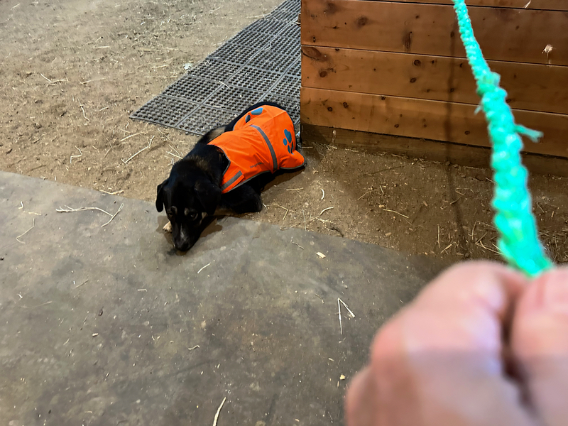 The easiest way to switch his focus is to produce a dog treat for him to eat. Asher has learned an impressive level of command compliance indoors with training drills. I wish the offering of treats carried the same power in the great outdoors.