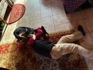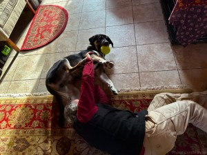 One thing that he seems very happy with is heavy physical play from me. I’m not always in the mood, but when I am, I try to give him a strong dose of roughhousing.
