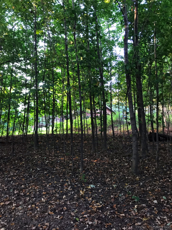 That’s about all the news I have today. I’ll leave you with a scene of our skinny trees that Cyndie captured to show how the property is beginning to make the transformation toward leaflessness.