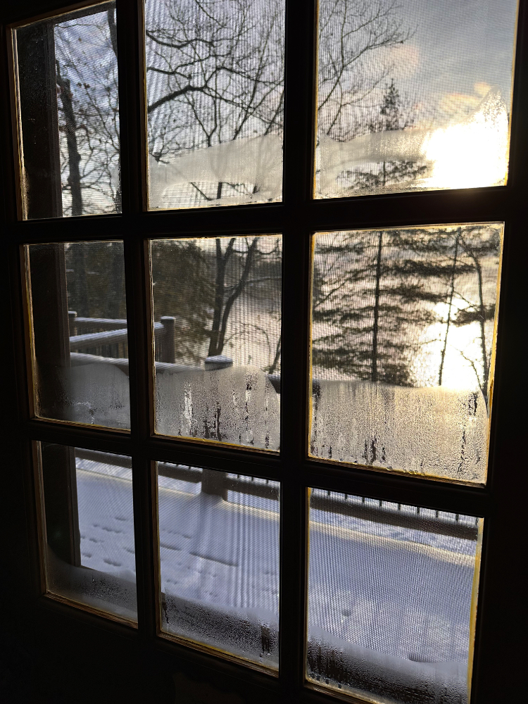 The temperature outside right now is 2°F, and the wind chill is below zero. Only the edge of the lake has started to freeze, and the open water is steaming up thick clouds over the surface.