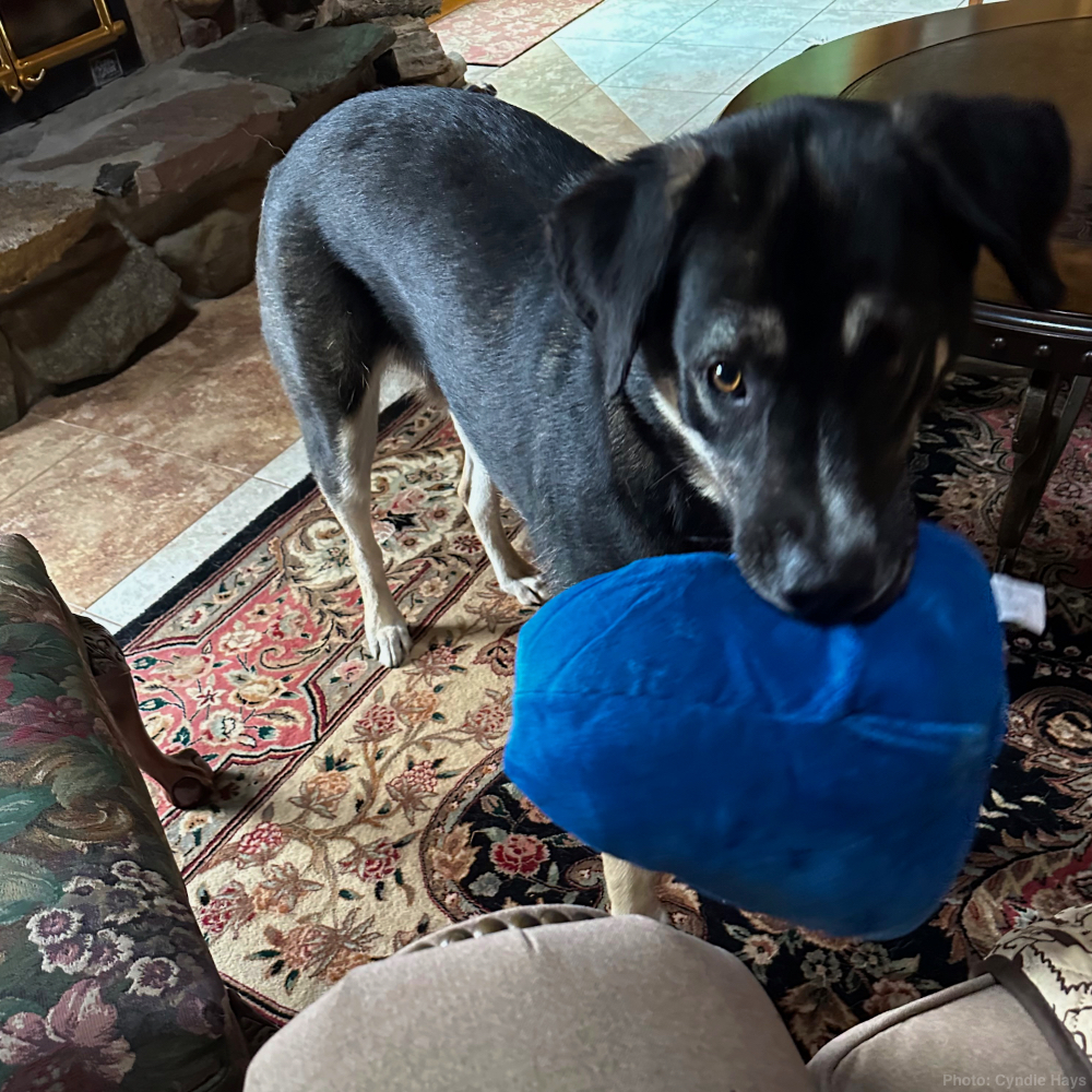A little while ago, she decided to write to the company and share her experiences with trying to keep the toy functional. Cyndie offered a suggestion they try making the body out of a tougher fabric for dogs like ours that like to play extra rough.