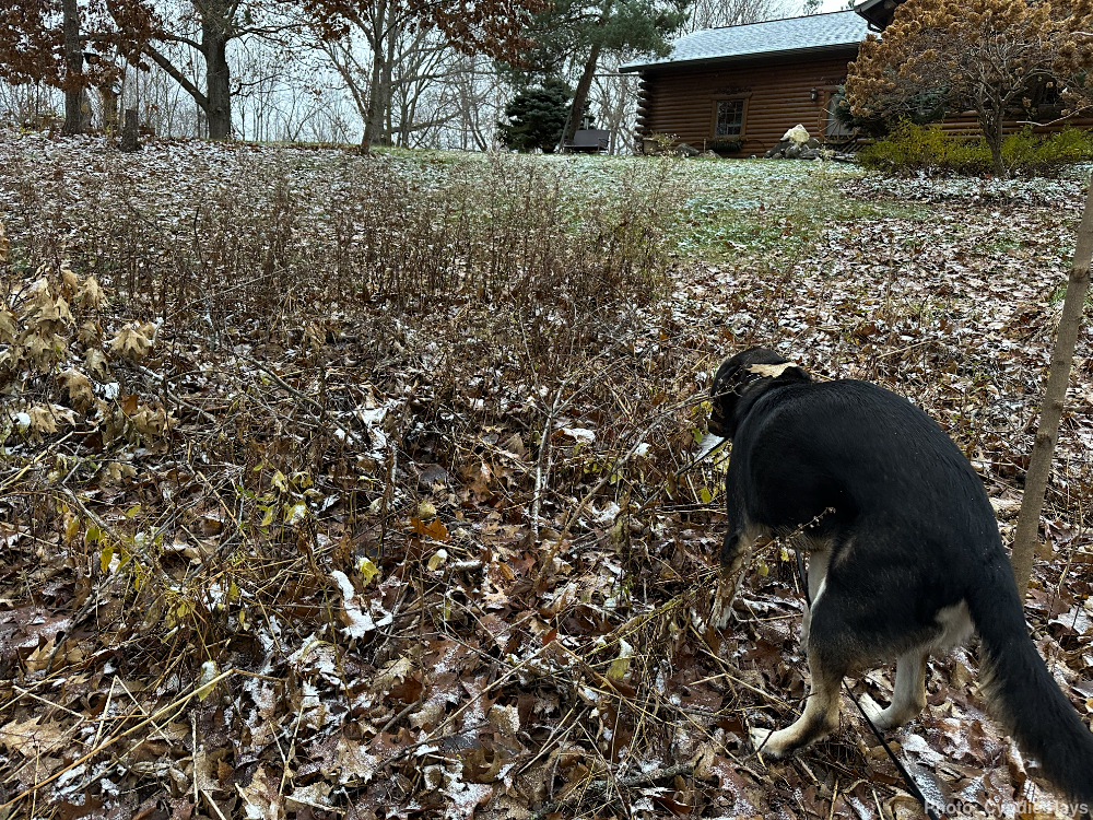 Asher was insistent. He wanted me to take him outside. I wasn’t interested in venturing out into the cold wind, but Asher persisted long enough to defeat my resistance. When I got out of the recliner to get suited up against the elements, I caught a glimpse of a surprising amount of falling snow.