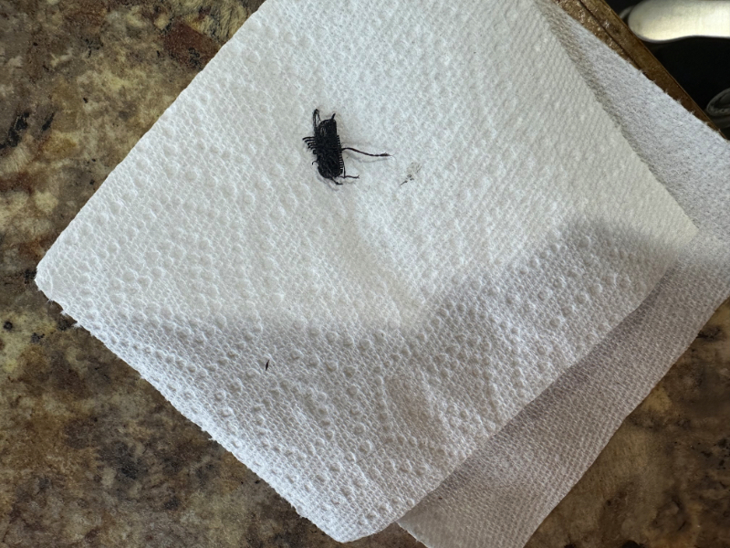 Cyndie spotted a giant dead bug on the floor that looked so gross she went to get some paper towel to pick it up, wondering what the heck it was and where it had come from in the middle of winter.