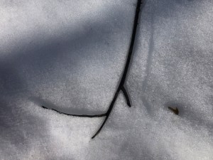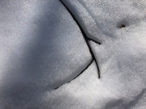 I like the shadows on the snow and the faint indentation of the stick from a previous position.