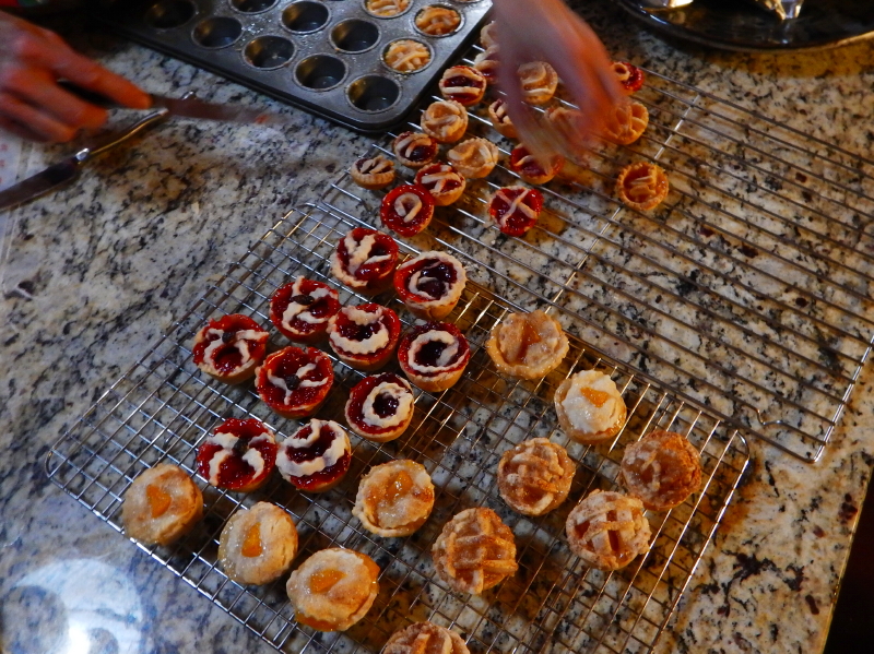 This year we started with tiny fruit pies baked in her mini-tins. I helped by testing a couple of them.