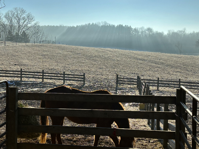 The paddocks are a little too dry in general lately, which makes for pleasant footing today, but I need to make myself grateful for the mud this weather will likely bring. The moisture will be a blessing for growing things.