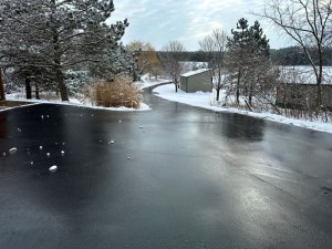 We live a couple of miles north of Beldenville proper, and when I turned onto County J, the pavement was bone dry.