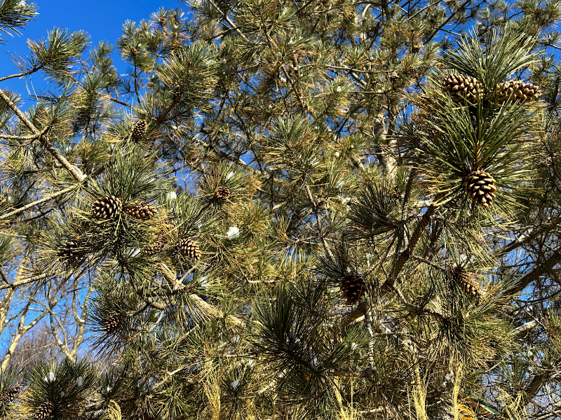 Most uncharacteristic of February is the clicking sounds of pine cones popping open in the warm sunshine.
