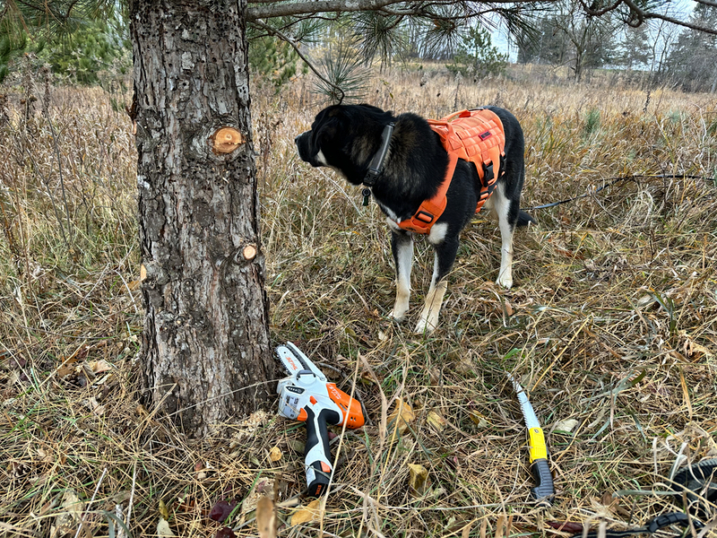 The tool of the hour, day, and weekend was my Stihl GTA 26 cordless chainsaw pruner. Even in cold temperatures, the battery lasted longer than I did. That saw is perfect for this chore.