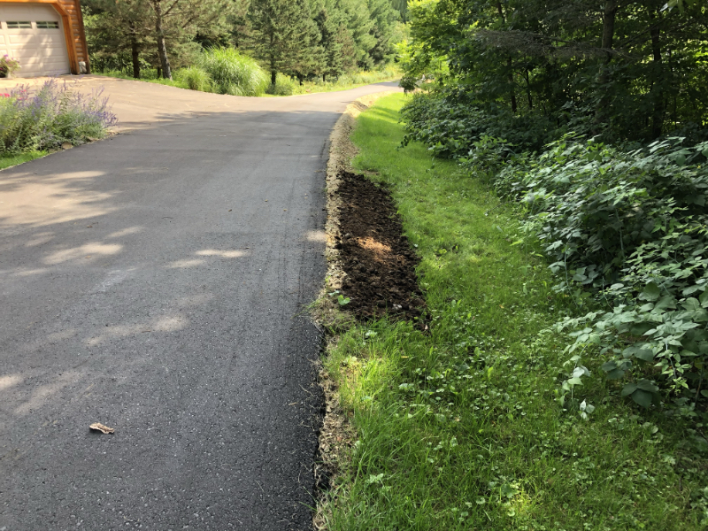 I think it is a reasonable improvement. Before we can actually achieve this level of finish, there remains a lot of distance of asphalt edge that is still exposed. I knocked off another 25 yards by myself yesterday. A little progress is better than no progress at all. I’m looking forward to Cyndie’s return tomorrow so we can double-team the job, which effectively doubles the distance we can complete in a day.