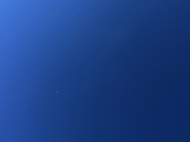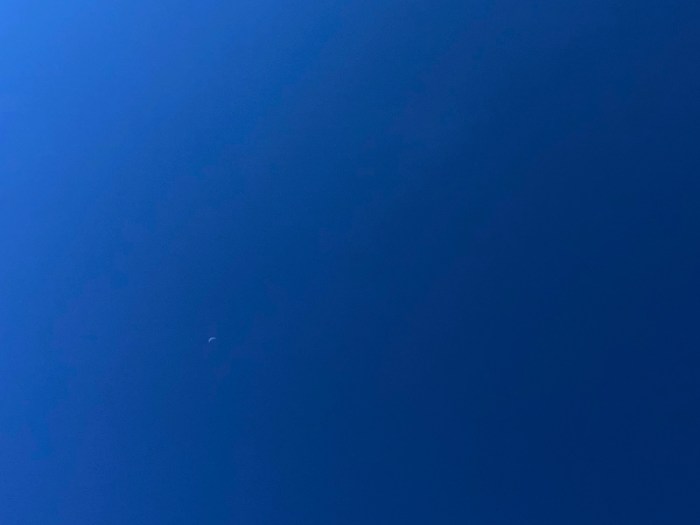 In an all-blue sky the other morning, the faint apparition of the crescent moon stood out as the only disruption.