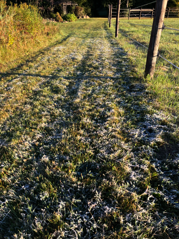 Yesterday, Cyndie noticed that Swings has a “chunk” of her hoof broken in a way neither of us have seen before. She checked with This Old Horse and learned it wasn’t a cause for major concern. Other than that, I think the herd is showing signs of enjoying the gentle transition toward fall as our temperatures have started to moderate and the hours of daylight are shrinking.