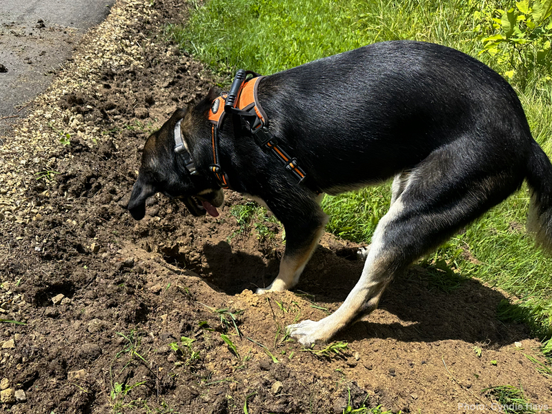 Asher had a pretty good day of testing his off-leash limits. Cyndie decided to use a lot of bribing with high-value treats to entice him to stay close to home and that seemed to pay off. I didn’t like him having free access to the compost area where I witnessed him eating manure from the freshest pile on two different occasions.