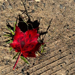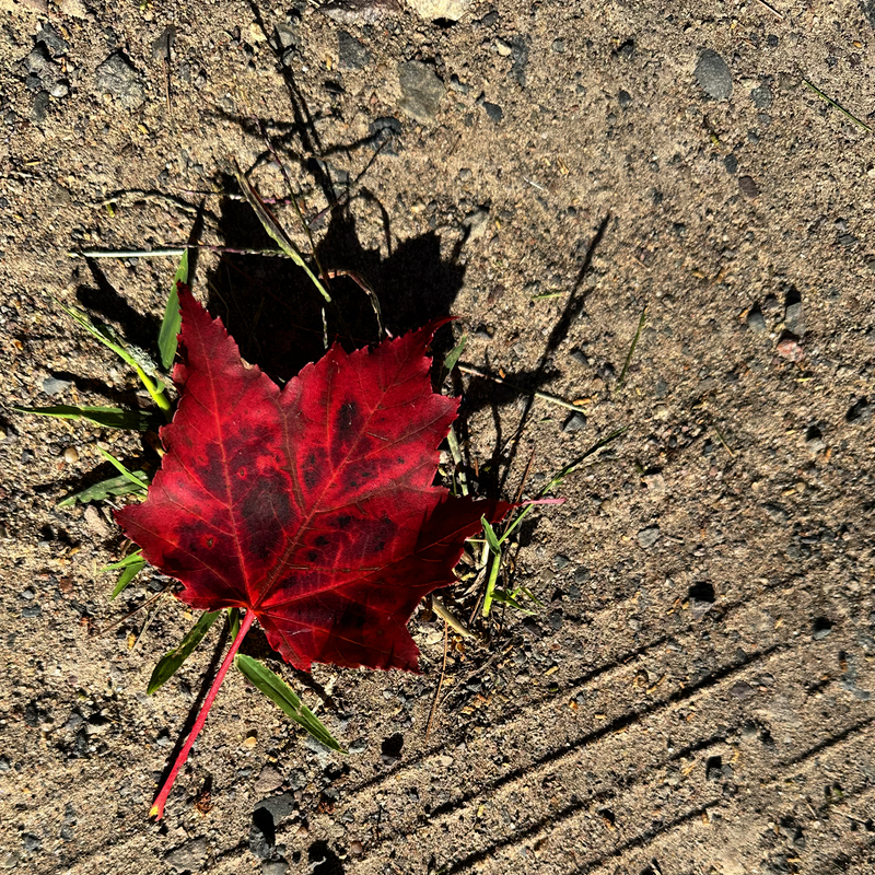 While we were on a walk with Mike and Barb yesterday, Cyndie found a bright red heart-shaped leaf.