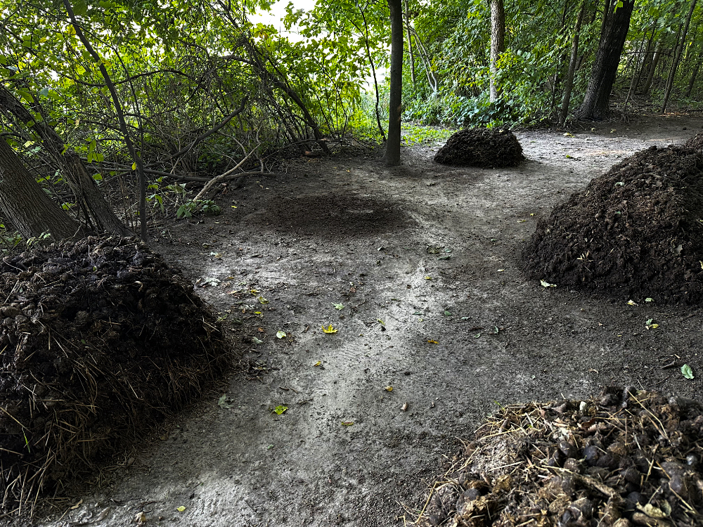 One valuable task that is less visible than others is the management of manure composting. It has been so wet this year, I’ve had a tough time keeping the piles active. As a result, I can’t move them out as often as I’d like to make room to create a new pile for the never-ending supply of fresh manure. Since we are going to be gone for almost two weeks, I wanted to provide ample space for our horse sitters to dump the manure they will be cleaning up every day.