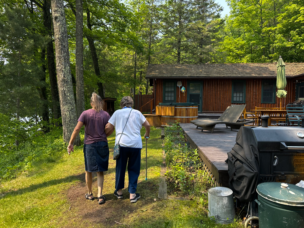 I managed to perk up enough to join Cyndie and her mom on a walk down to look at the lodge that is well on its way to being prepared for a pending demolition of everything except the oldest octagon-shaped log portion with the stone fireplace. I took a brief swing on the swingset that won’t be preserved.