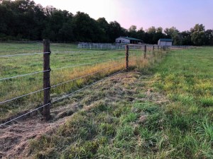 We’ve barely covered a fraction of the trimming that needs to be done so this project will be ongoing for multiple days. We’d like to get all the fence lines cleared because the guy who cuts and bales our hay field is planning to come as soon as he gets all his own fields tended. It makes it easier for him to cut close if the fence is clearly visible.