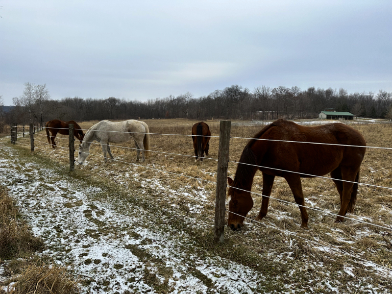 Other than that, things are pretty quiet around the ranch. Yesterday, while walking Asher around the hay field, the horses made a friendly gesture of approaching us and resuming their grazing close to the fence.