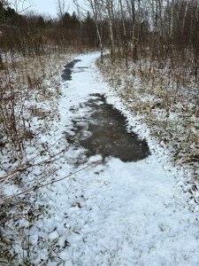 This morning, after the dusting of snow, I came upon fresh evidence that hydrostatic pressure is still pushing water to the surface in places.