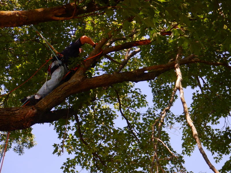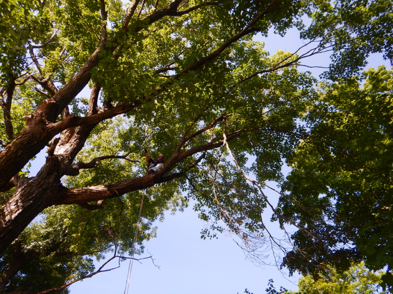 It was an incredible treat to watch my brother work. I had no idea it was possible to toss a line as high into a tree as he did, and successfully drop it down on the other side of a limb. Seeing him pull himself up made my arms tired just watching. Actually, after a while my neck muscles were complaining about how much time I spent with my head tipped back, looking straight up.