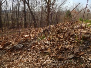 Much more common and easy to identify are the numerous grapevines sprouting up from almost everywhere, but especially from places where we have cut them out before. That plant is VERY good at spouting new life from any fragments left in contact with the ground.