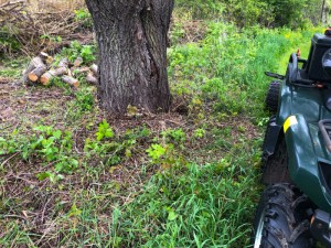 It felt a little insane to be plodding back and forth in growth that was filled with so much poison ivy but I decided it was a risk I needed to face to complete the bigger task at hand. It feels great to have the ground around the tree entirely picked up after the pruning. Now I only have twenty or thirty others left deserving similar treatment.