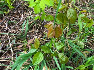 Part of the problem probably stems from the fact that we don’t see very far into the thick woods off the trail during the growing season, and there are so many green leaves that we’re less likely to spot poison ivy leaves among all the others. Out on the edges where it grows in the sun, it is very easy to see.