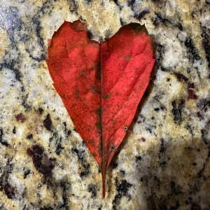 While we were on a walk with Mike and Barb yesterday, Cyndie found a bright red heart-shaped leaf.