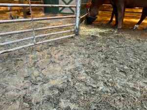 The soupy surface was as hard for me to walk through as it was for that horse that had tried to stop. Luckily, the four of them calmed down significantly after a few minutes of munching feed. I was able to focus on the art of picking up manure around them that was virtually inseparable from mud sliding into the tined scoop.