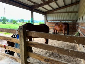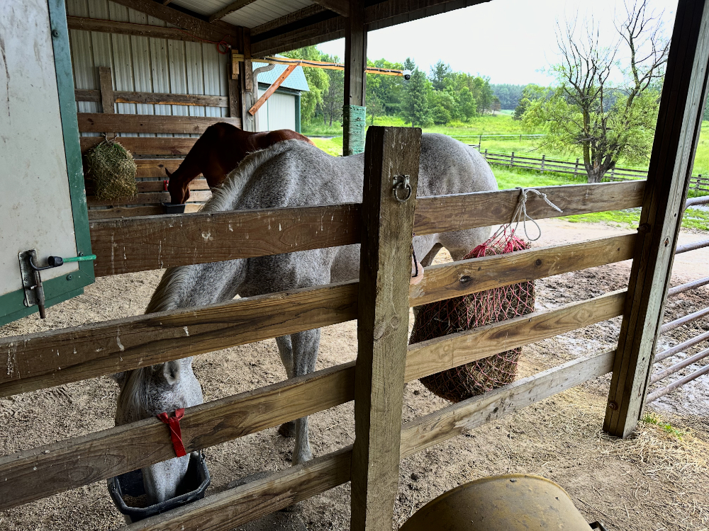 It was rewarding to find the horses equitably sharing space under the overhang this morning as rain poured down. Maybe it shouldn’t be a surprise to me but they were even positioned properly for their feed stations. That is not a common occurrence.