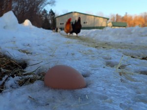 There was a single frozen egg discovered this morning next to the wall of the barn. Oops.