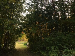 Wandering down the backyard hill toward the opening to the labyrinth, the leaves are still primarily green. Beyond that, there are brilliant splashes of gold, orange, and red showing up with surprising speed.