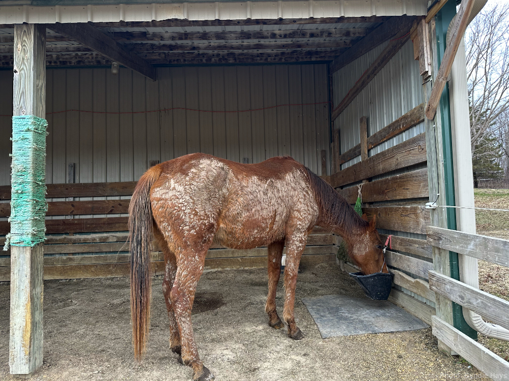 In our herd of horses, the role of muddiest mare has changed from the usual pair of either Mix or Light to Mia this week.