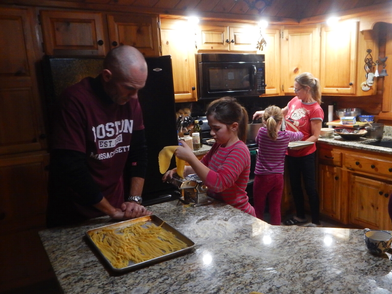 Indoor activities included plenty of cutting and pasting for collage projects, then some delicious pasta-making, and ultimately, fabric painting.