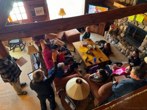 If we weren’t playing games or editing photos, we were eating. Smoked bbq meatballs, white chicken chili with cornbread, breakfasts with gooey caramel rolls, spicy biscuits and gravy, fruit salad, pizza from Coops, scrumptious salads, and dessert treats that shall not be named so no one has to think about those calories.