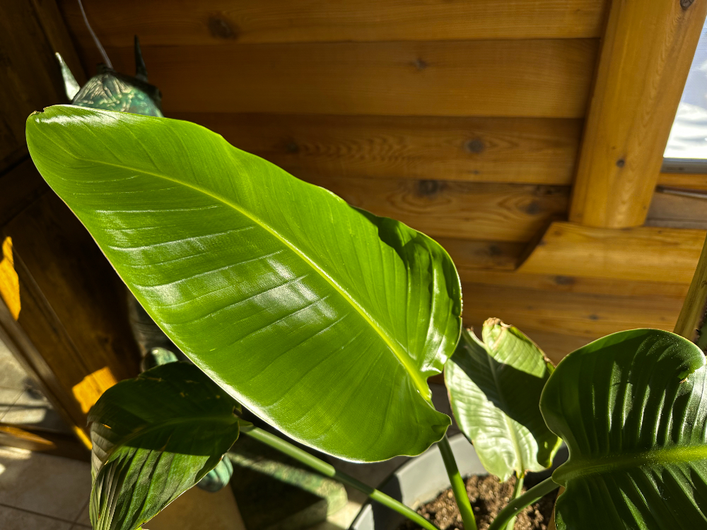 Maybe the time when we discovered the pot had been holding water that finally broke free and drained for days has taken this long to show up in the leaves. We figured the roots must have been unhappy, but the leaves were growing so well at the time it confused us into thinking maybe we got away with the soaking with little damage.