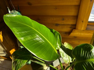 Now I’m thinking maybe not. I was not aware of the time-lapse of cause and effect here. Maybe we will see future improvement since we have been using a meter to measure soil moisture ever since discovering the excessive watering. We are also not certain that our two frigid weather spells didn’t cause that corner of our house to get chillier than the bird of paradise prefers.