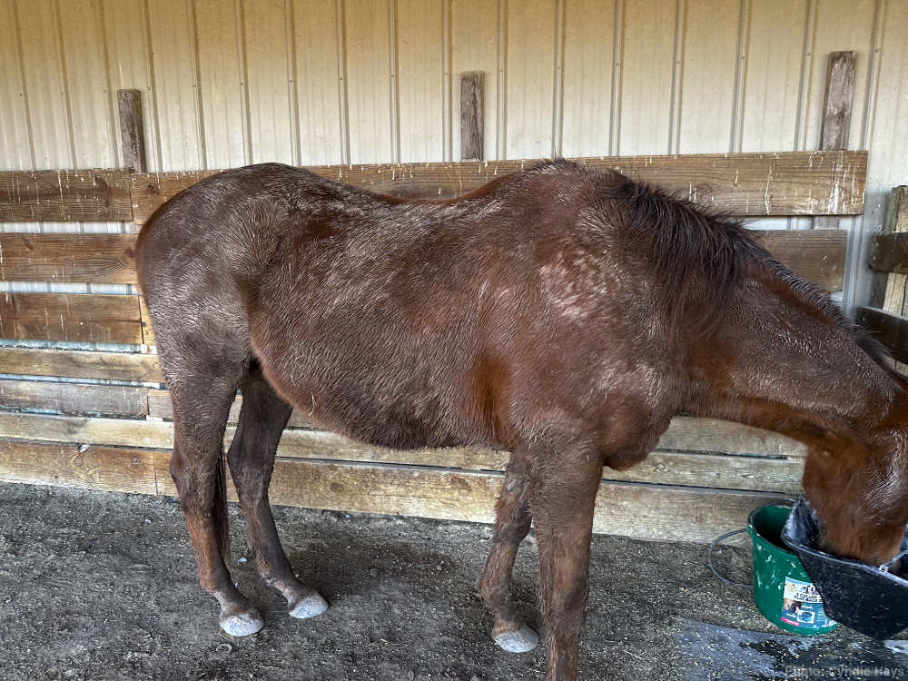 The horses were successfully trimmed by the farrier while I was away. They are all looking their muddiest best. Where they once were making horse-angels in the foot of snow, it is now just a sloppy meltwater mess of muck that they are rolling around in.