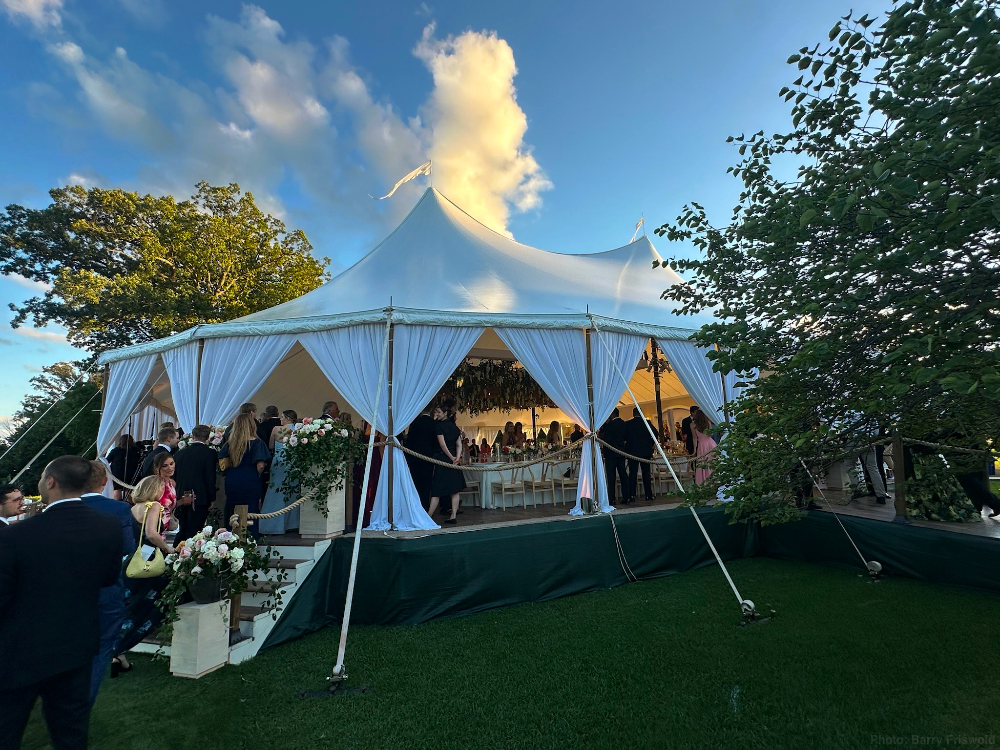 Mingling for a moment in the absolutely perfect weather with drinks and appetizers before being ushered toward the dinner tent. The incredible dance band kicked off their first set with an energy that pulled guests in, seamlessly moving them directly onto the dance floor.