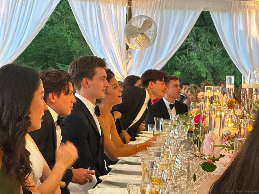 Food would have to wait. One song after another without stopping until it seemed like dinner might as well be entirely skipped. Finally, the band allowed the energy to subside, and folks moved toward their assigned tables.