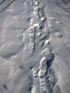 Fifty-some years and too-many-ankle-sprains-to-count later, I’m beginning to notice my right foot “toes out” a little bit in the prints I leave behind in the snow.