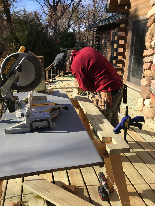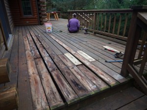 That meant Cyndie and I were both out on the deck after I got home from work yesterday, manically striving to prepare as much as possible for today’s plan of installing the new boards.