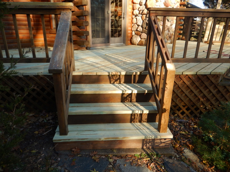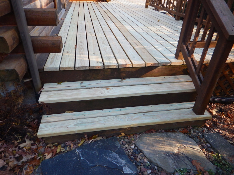 I was grateful to have Mike’s power tools to create cut-outs on boards and lucky to have an old length of 4 x 4 in the shop to replace a rotted post on the railing of the second set of steps.