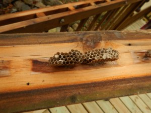 I’m glad we waited this late in the season because, unknown to us, there were a lot of wasp nests hanging underneath the boards. Our recent freeze rendered the nests vacant.