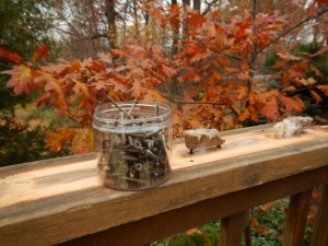 On the edge of the woods we put our lives at risk to complete this job because of the mosquitos. Teeny, tiny, or full-sized, they show up in droves. They find their way behind our eyeglasses and into our ears. Bites on my neck and the backs of my arms. I can’t tell if the itch is from an old bite or one currently happening. It sure hampers the experience of forest bathing.