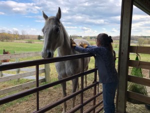 Taking extra caution while we are getting to know each other, Cyndie responded to Mix’s invitation for a little post-workout brushing by reaching from our side of the gate.