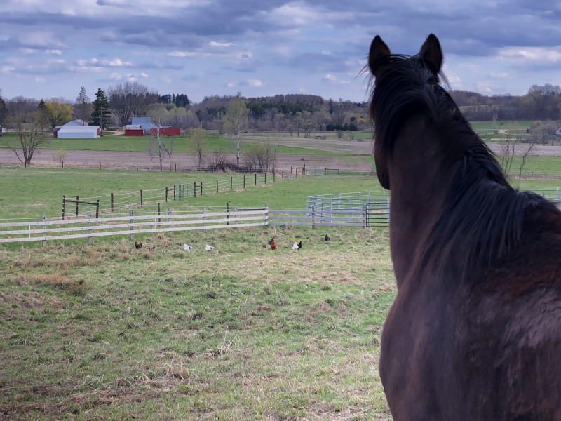 The horses have had a few days of brief visits to the back pasture now and it just makes them yearn for more. On the first day, they only got 15 minutes to munch. We increase it by 15 minutes each day for about two weeks, after which we can leave the gate open and they can come and go as they please.