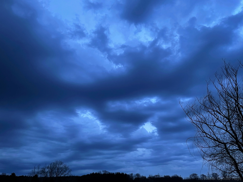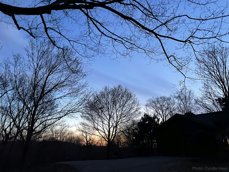 As Cyndie approached the house last night after closing the coop and barn doors, the dark silhouette of the house was nicely complimented by the fading color in the evening sky.